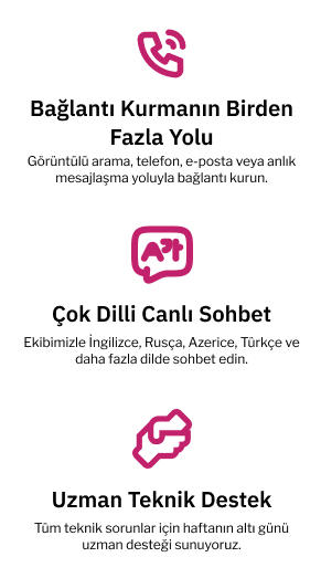Ekibimizle İngilizce, Rusça, Azerice, Türkçe ve daha fazla dilde sohbet edin.